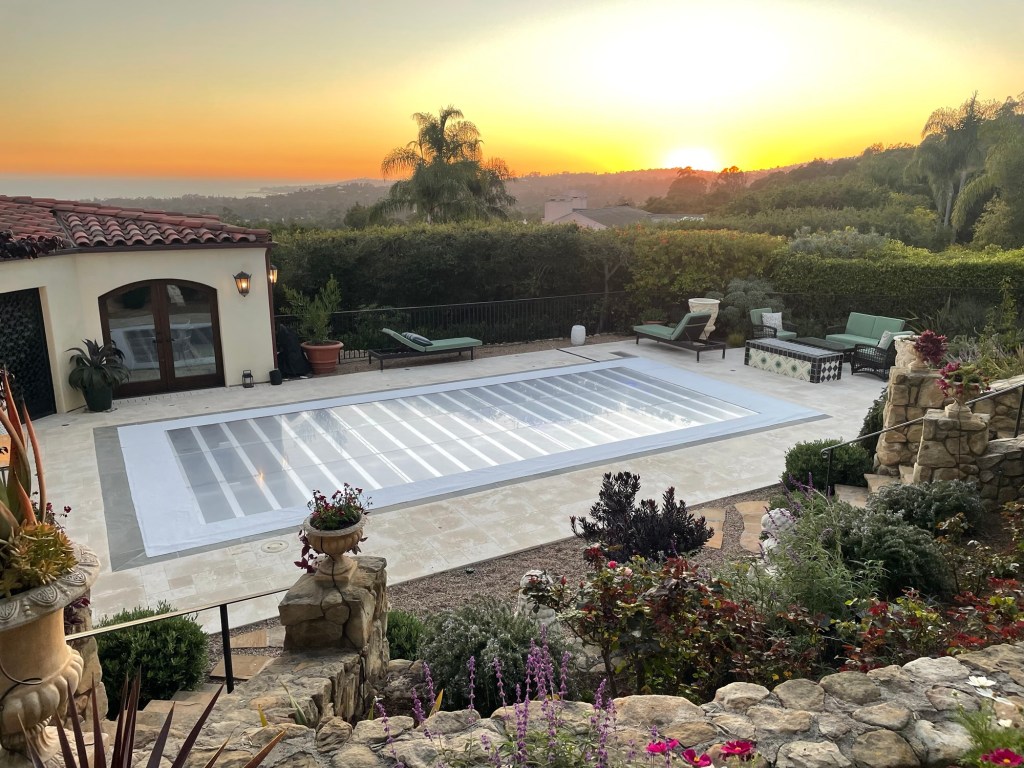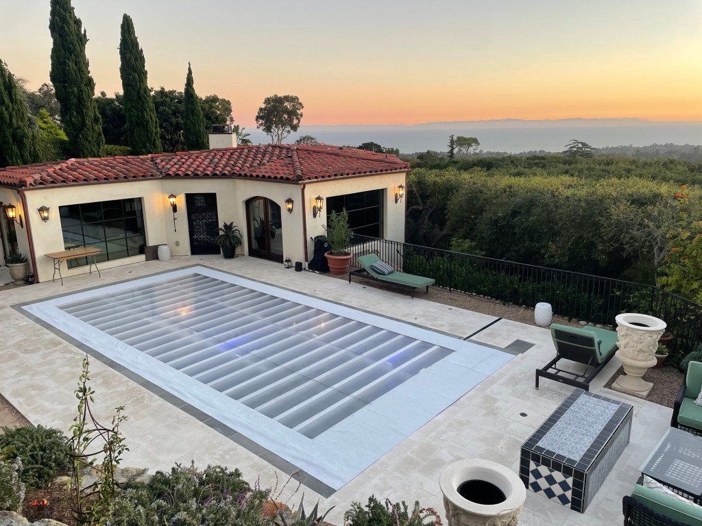Flush plexiglass Dan for a pool cover for a wedding in Montecito, California