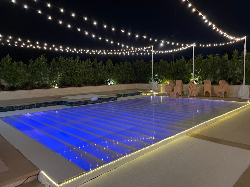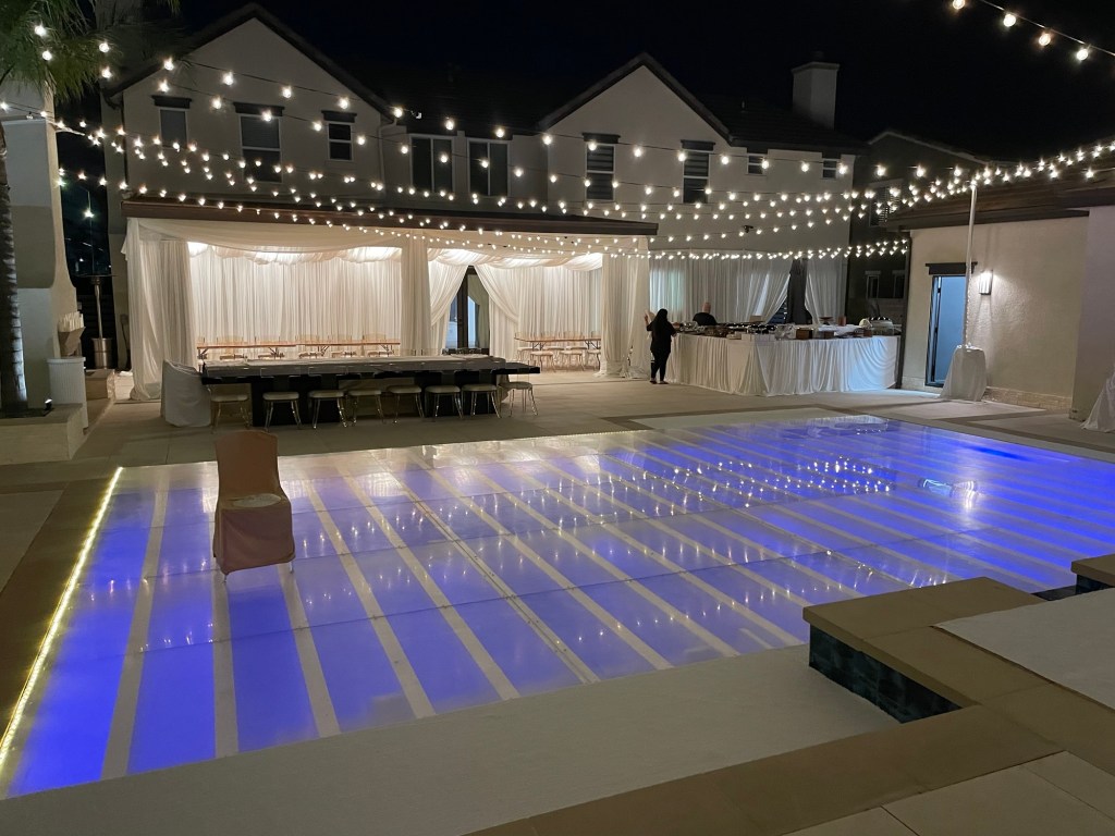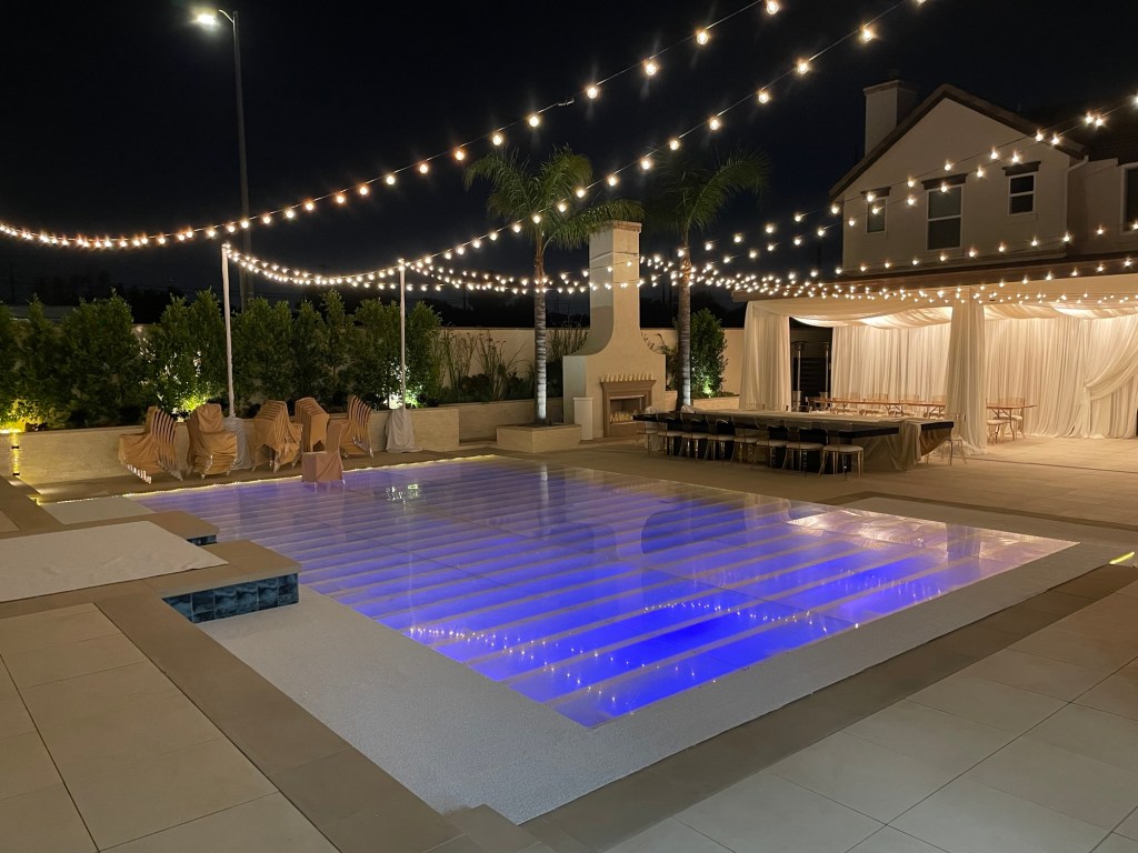 Plexi glass, dance floor pool cover over and uneven pool Chatsworth, California