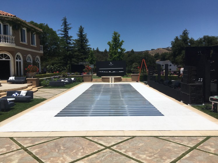 Plexi glass acrylic pool cover dance floor rental Bel Air CA